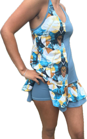 Robe partie jupe plissée imprimée + short+ brassière intégrée